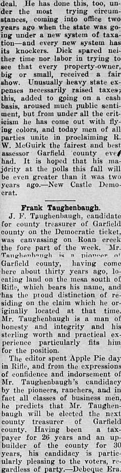 likely related to the Taughenbaugh family that Taughenbaugh Mesa is named after
