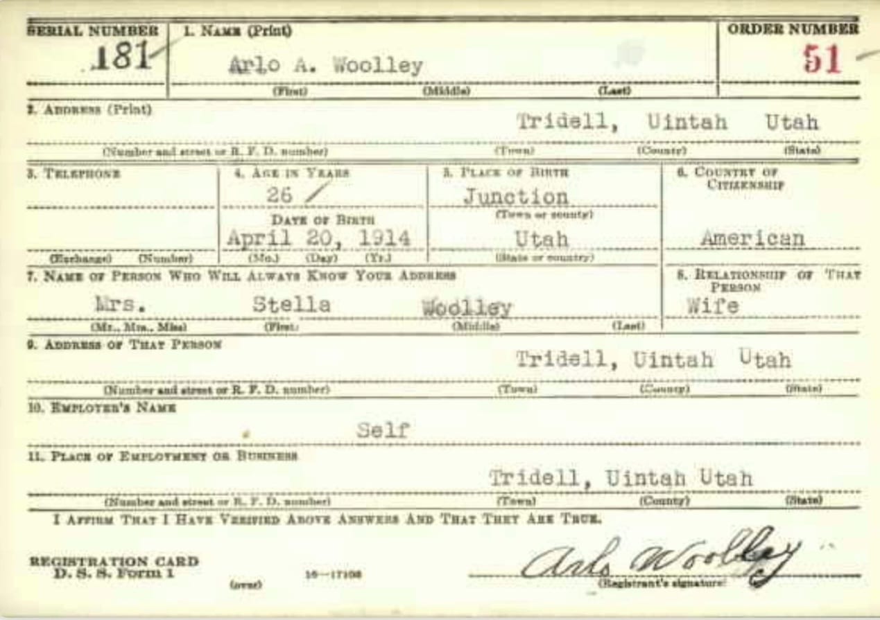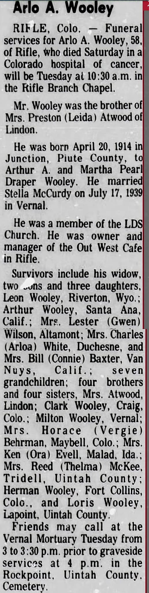 Arlo A. Woolley grew up and went to schools in Tridell, Utah, a small