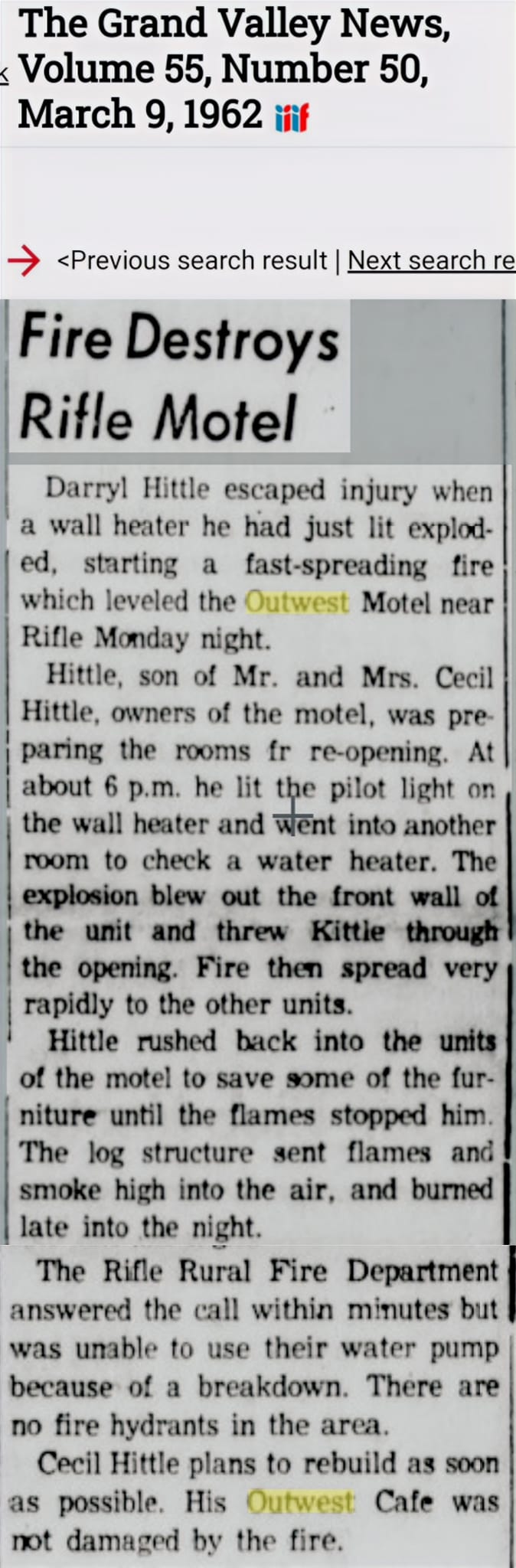 Outwest had burned. At that time, it was still owned by Cecil Hittle.