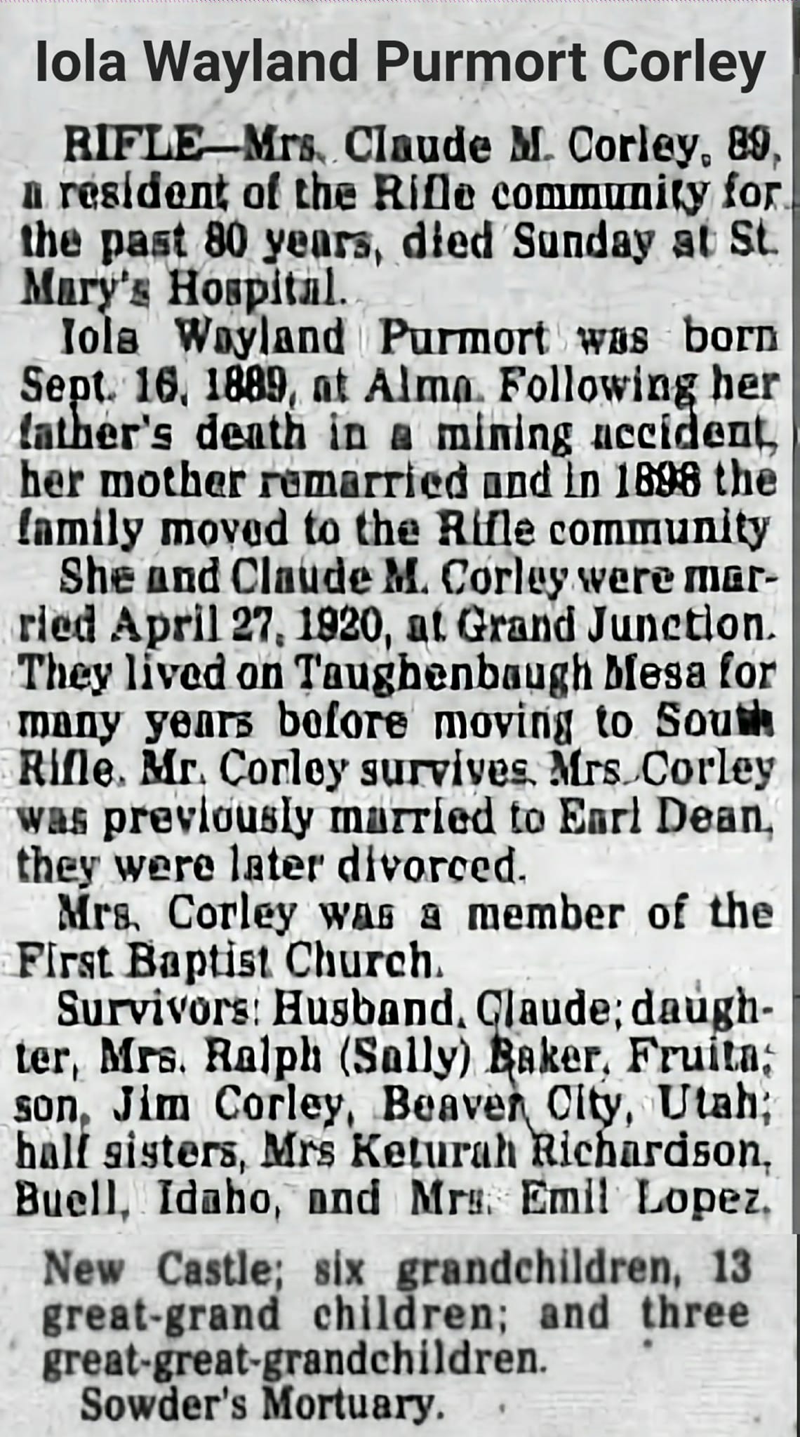 to Rifle in 1898. Thomas returned first then Alice and girls arrived