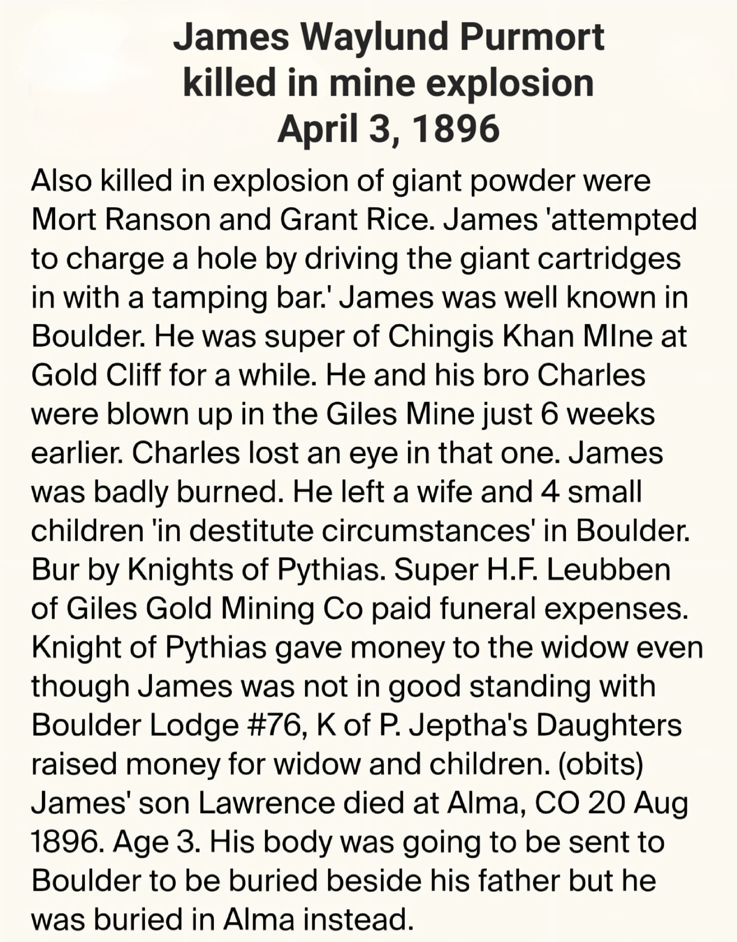 James Purmort on December 12, 1888, in Fairplay. They had four children,