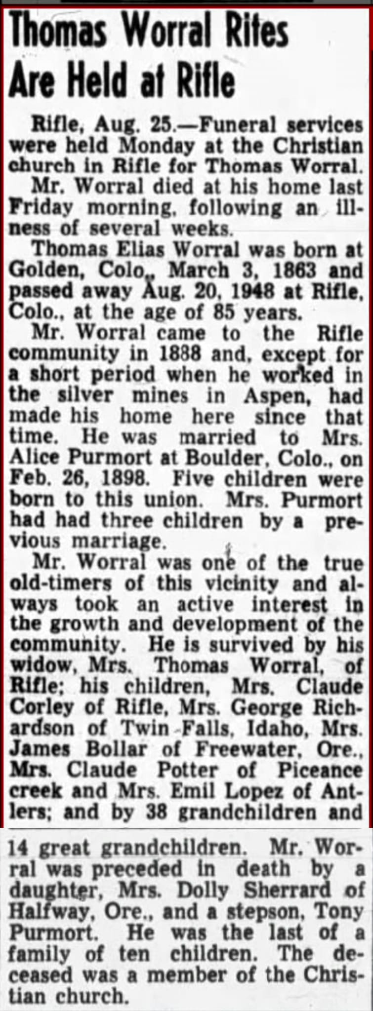 married Thomas Worrall in Boulder on Feb. 26, 1898, and the family moved