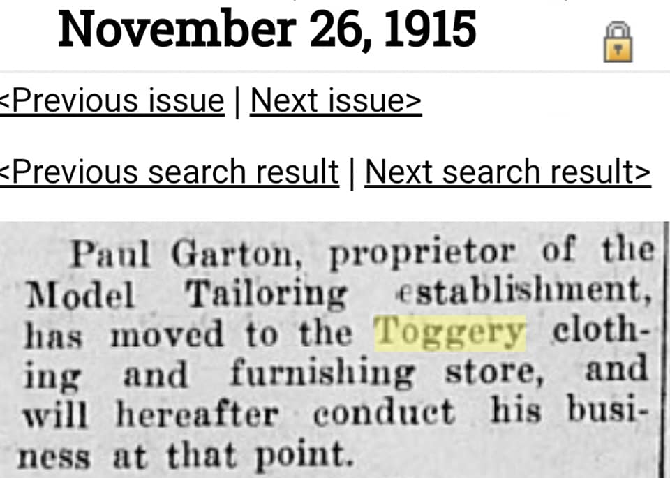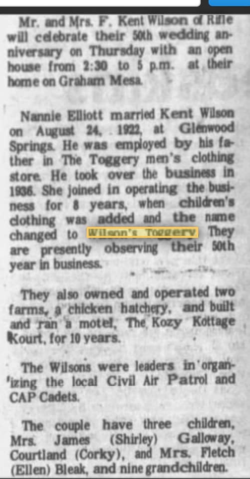 worked in the store 8 years, and it was renamed Wilson's Toggery. They sold the