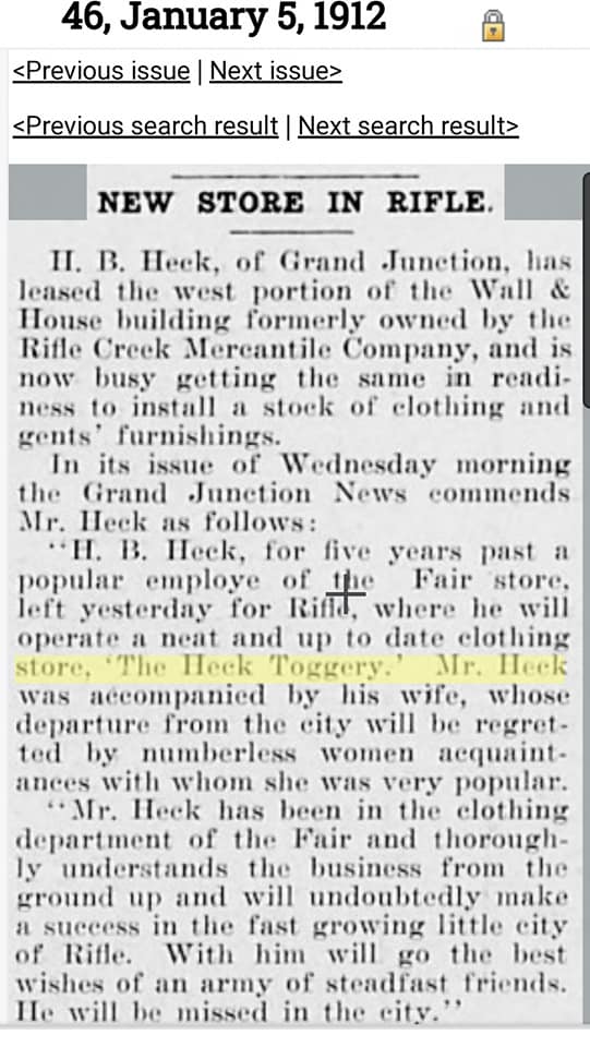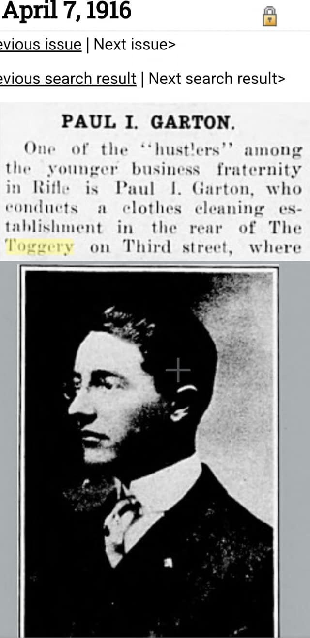 born in 1900 and passed in 1973. He moved to Rifle in 1906 with his father H. C.