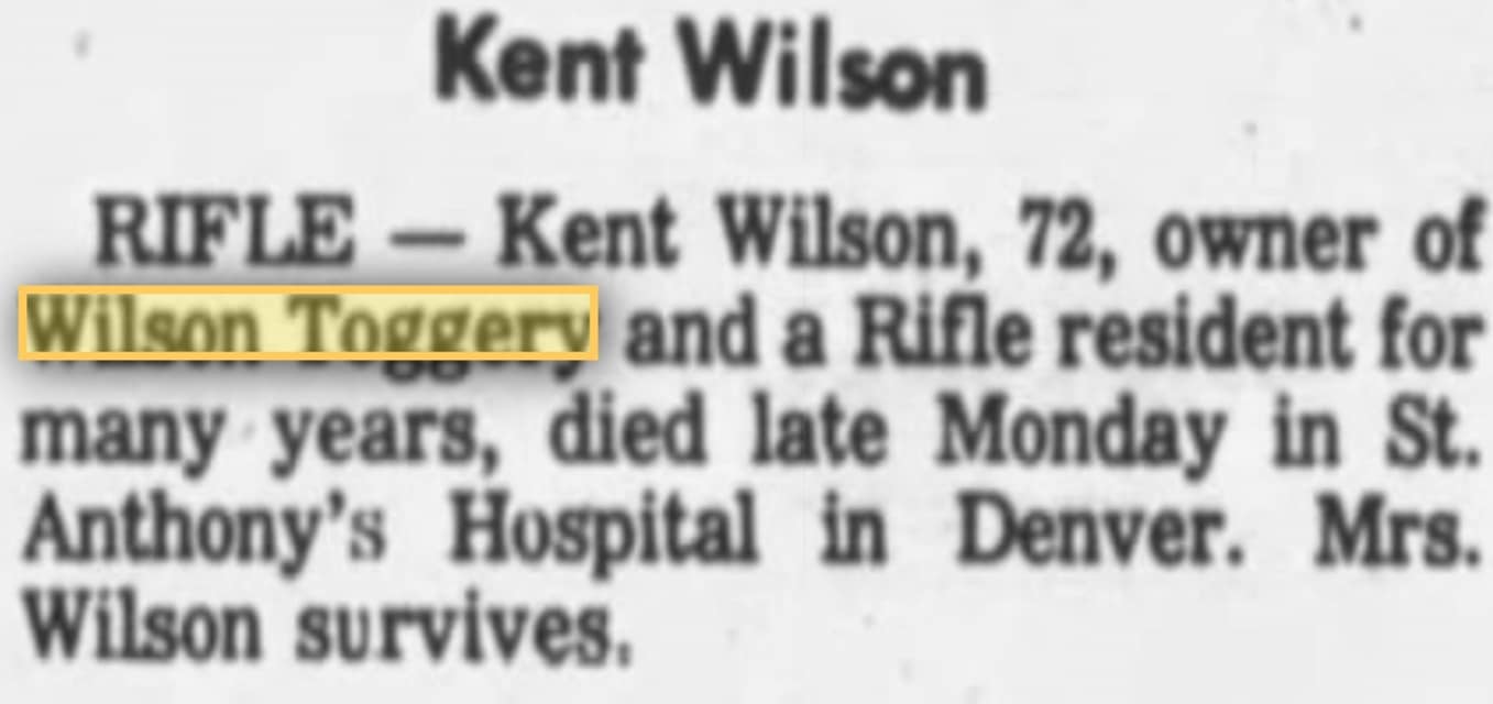 Toggery. Kent partnered with his father and the business became H. C. Wilson and