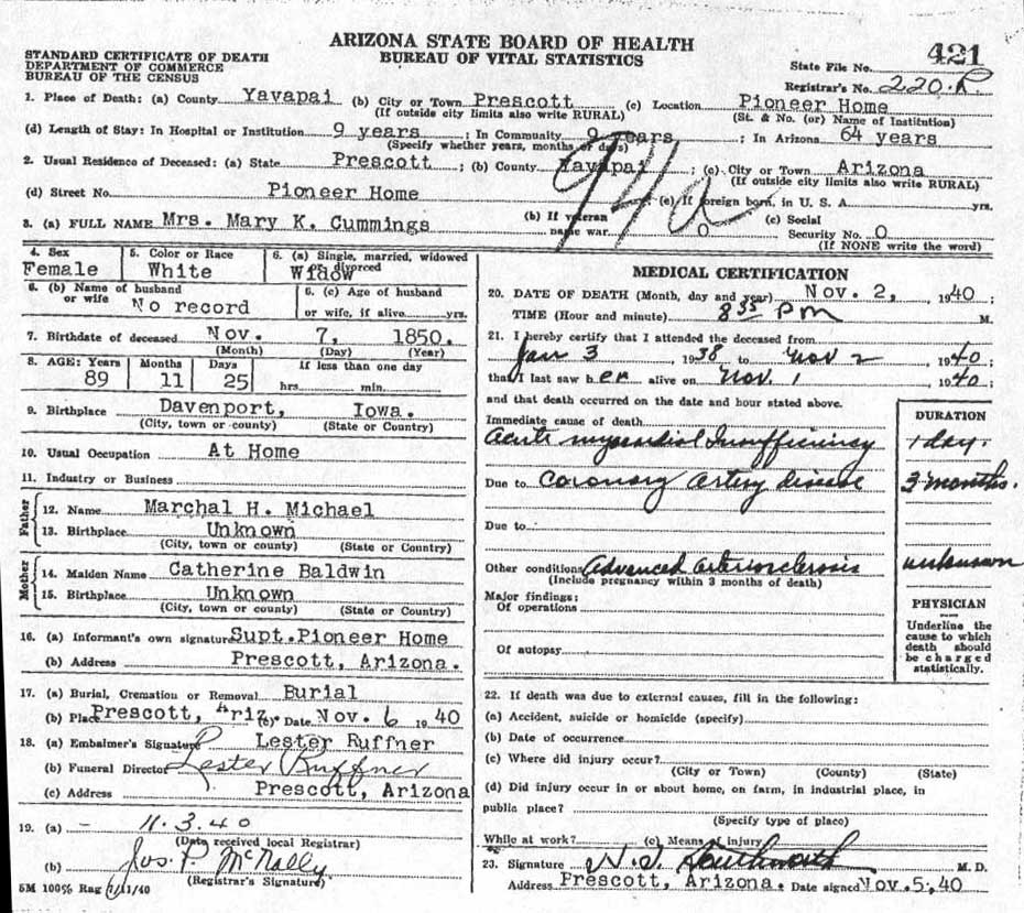 Certificate - Big Nose Kate (Doc Holliday's Girlfriend - Mrs.