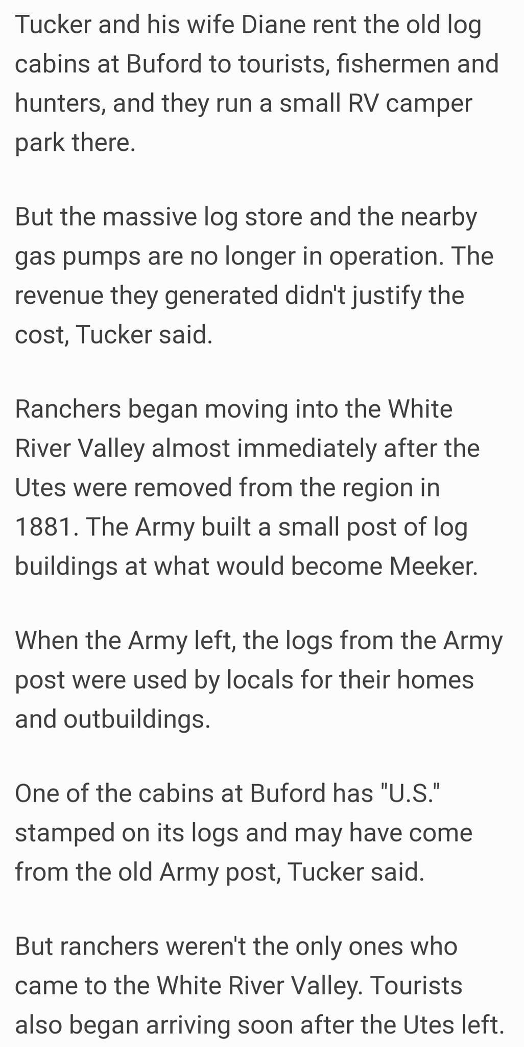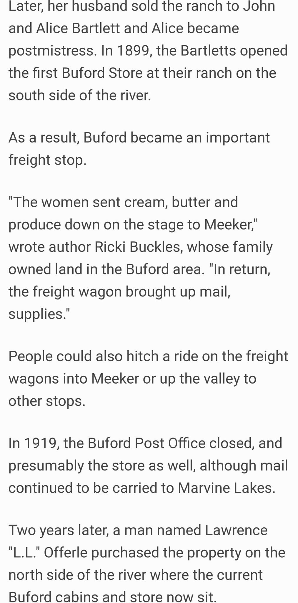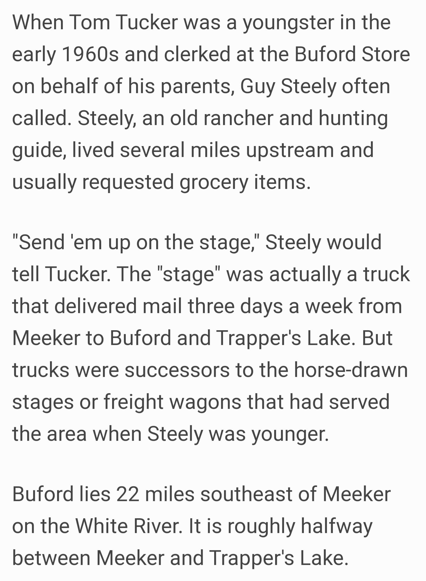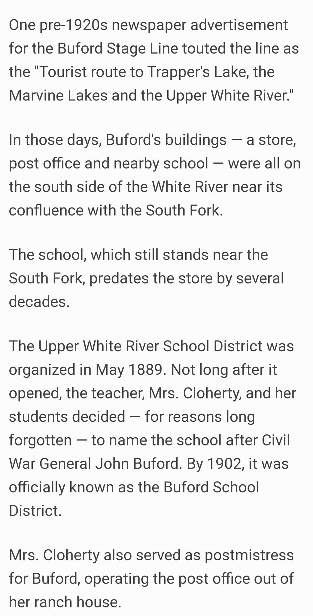 Tom Tucker ~ The original Buford store was across the river from the current location. The building was a store and home combination. The county bridge/road crossed the White River here before the road was realigned. Some of the old logs from this, the original store wer still in a pile in 1965.