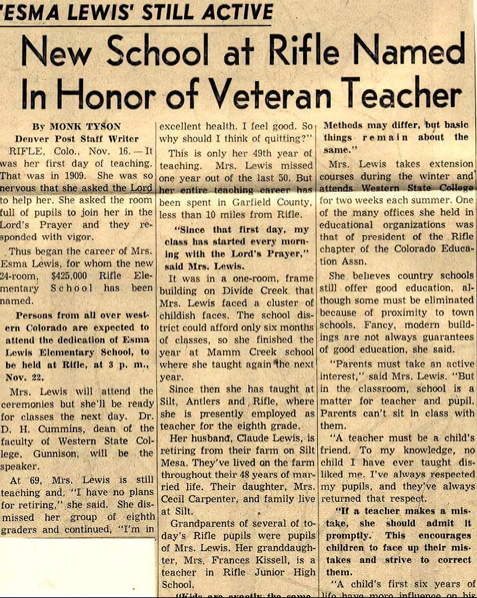 she came to Colorado to teach school. She would continue teaching for