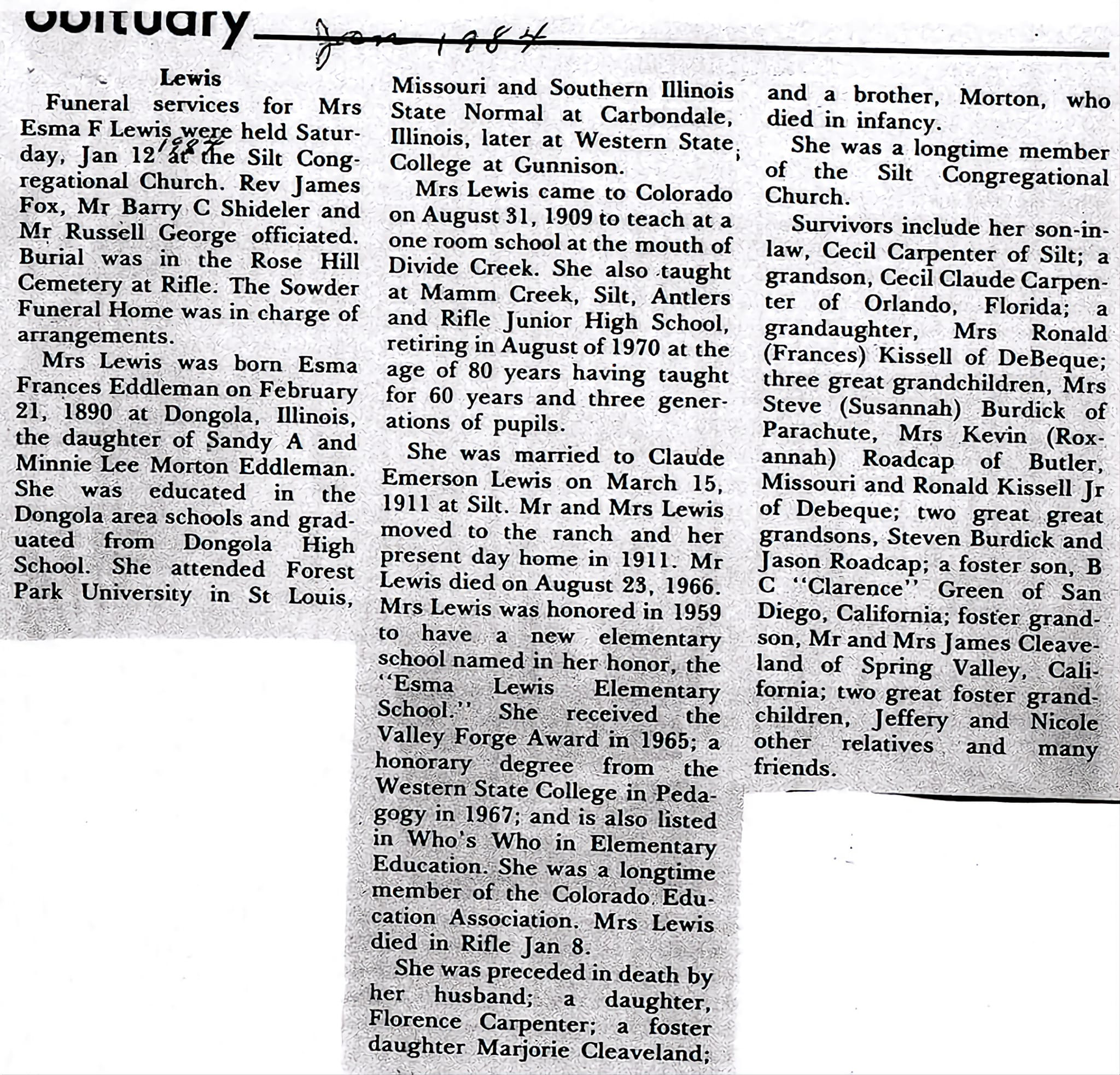 Esma Lewis Obituary