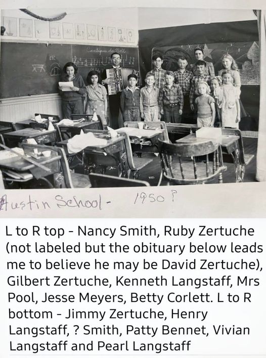 L-R top: Nancy Smith, Ruby Zertuche, ?David Zertuche?, Gilbert Zertuche, Kenneth Langstaff, Mrs. Pool, Jesse Meyers, Betty Corlett.