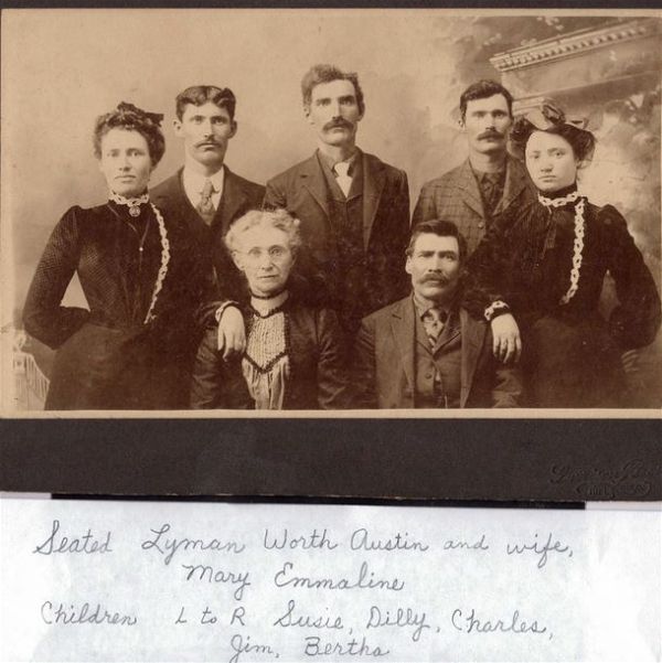 Lyman Worth Austin, Mary Emmaline, Susie, Dilly, Charles, Jim & Bertha