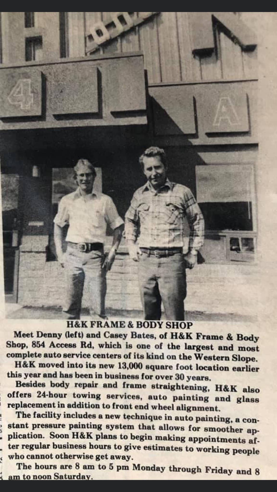 Meet Denny (left) and Casey Bates, of H&K Frame & Body Shop 854 Access Rd.