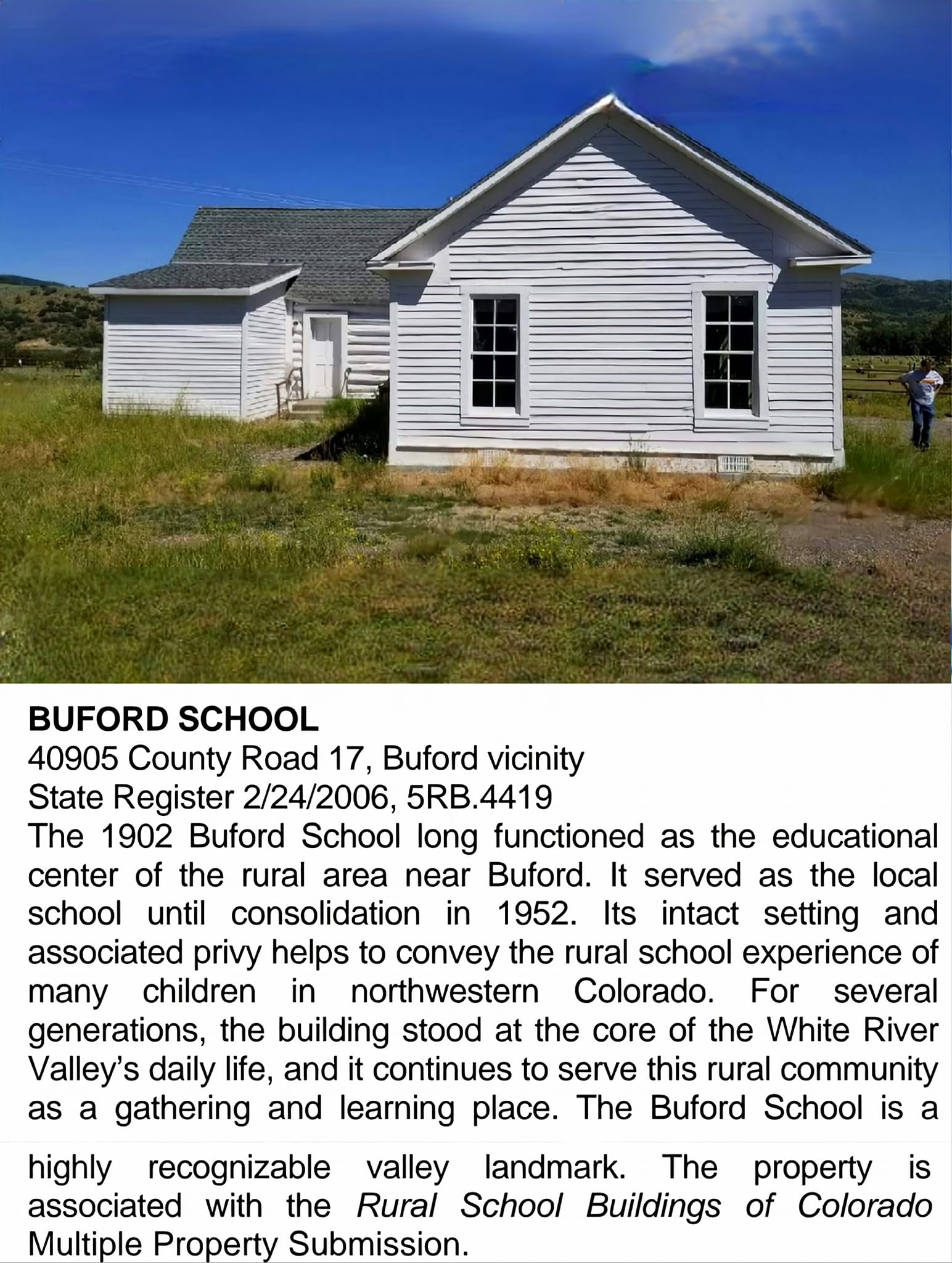 Buford School 40905 County Road 17 Buford, Colorado.