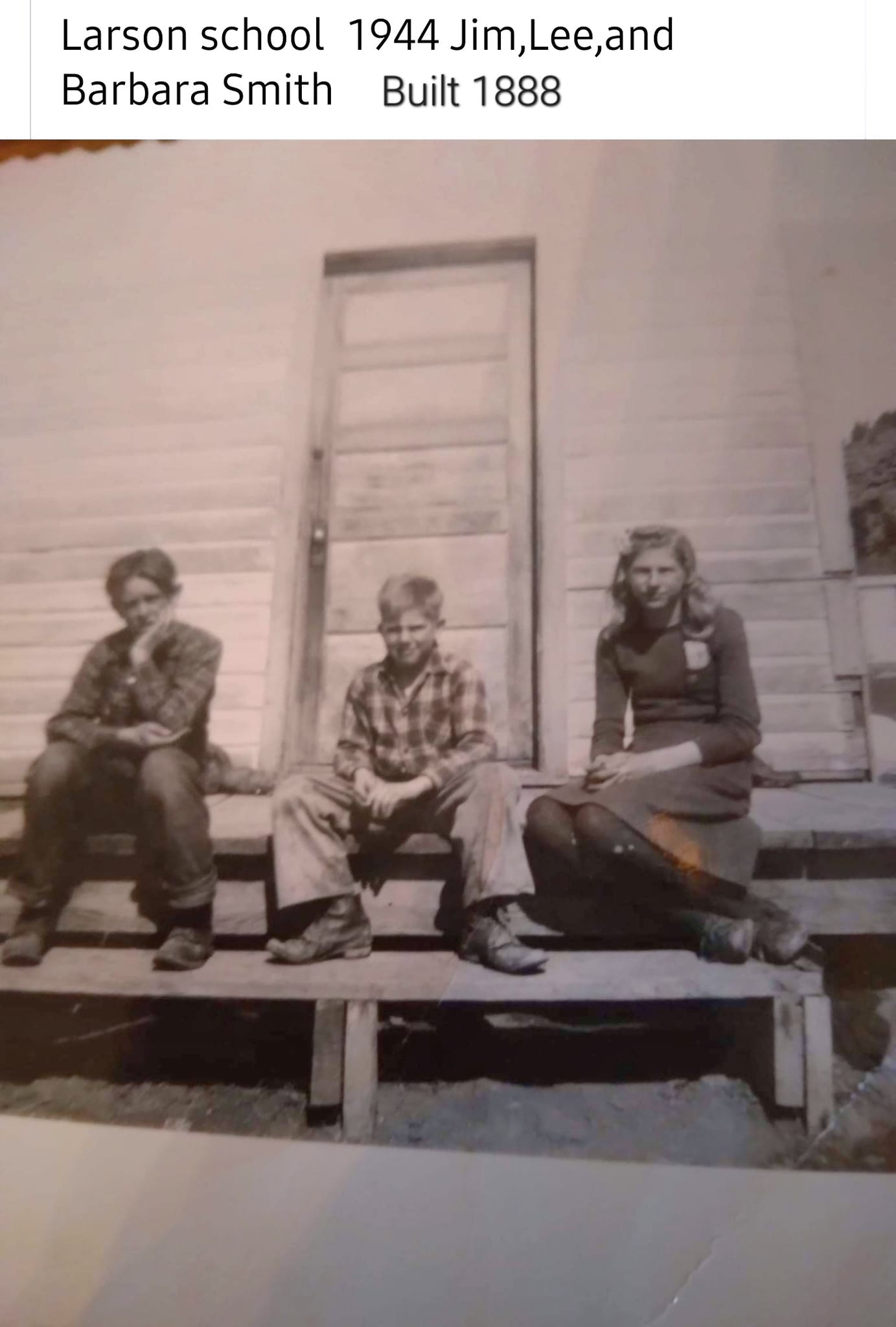 Larson School 1944 Jim, Lee and Barbara Smith ~ School was built in 1888