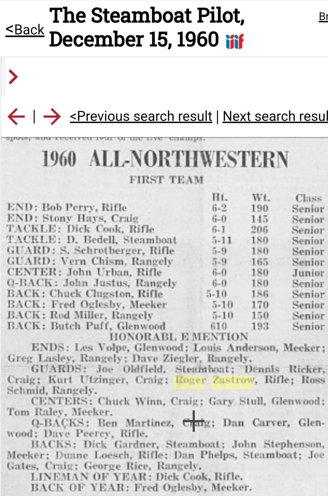 1960 was a good year for Rifle Football. Multiple players were selected all