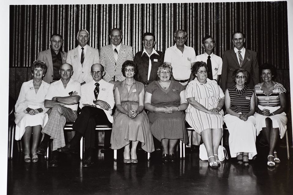 south edge. Names L-R: Front row: Maebelle Starbuck, Bill Weatherly, Edith
