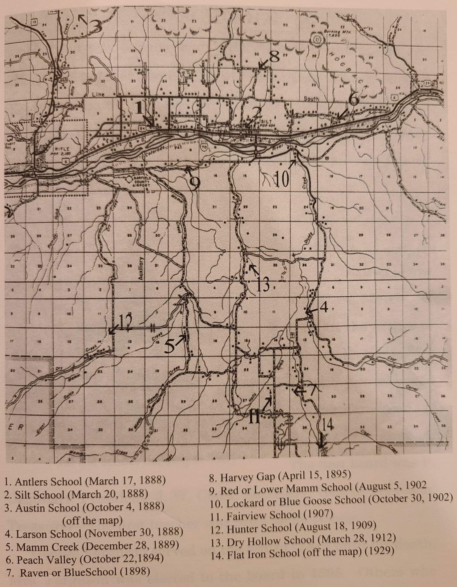 Map showing locations of Silt Schools