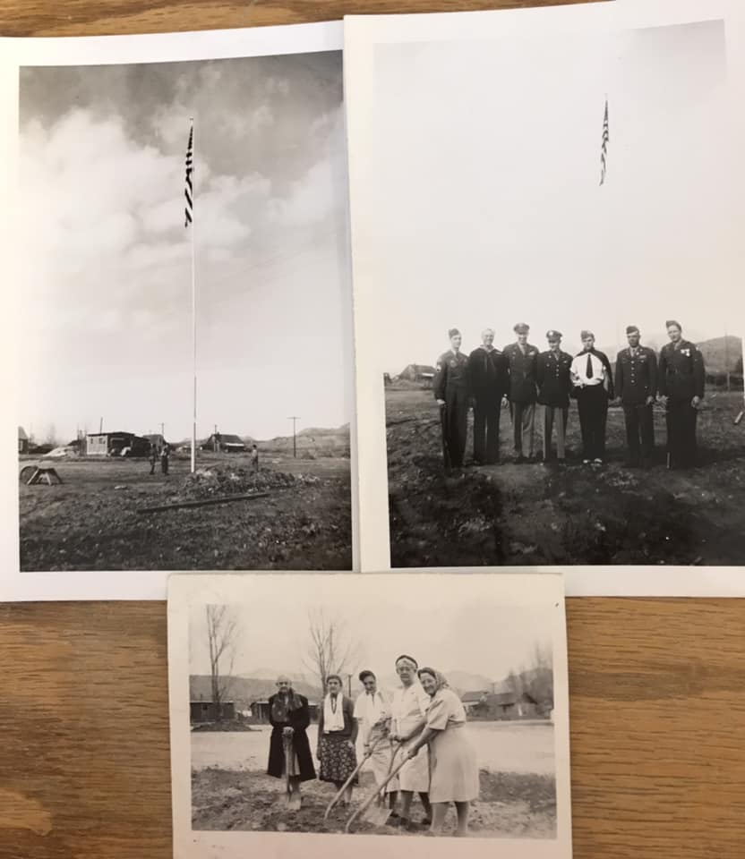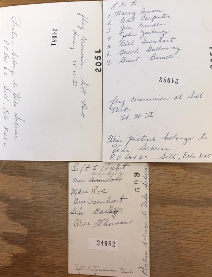 These are the builders of the Veterans Memorial Flagpole in Silt Colorado: Harry Anson, Cecil Carpenter, Jim Cowden, John Zarlingo, Bill Isenhart, Gerald Galloway and Grant Barnett. Ladies with the ground breaking shovels are: Mrs Arendale, Mildred Roe, Grace Isenhart, Lela Gary and Alice Thomas.