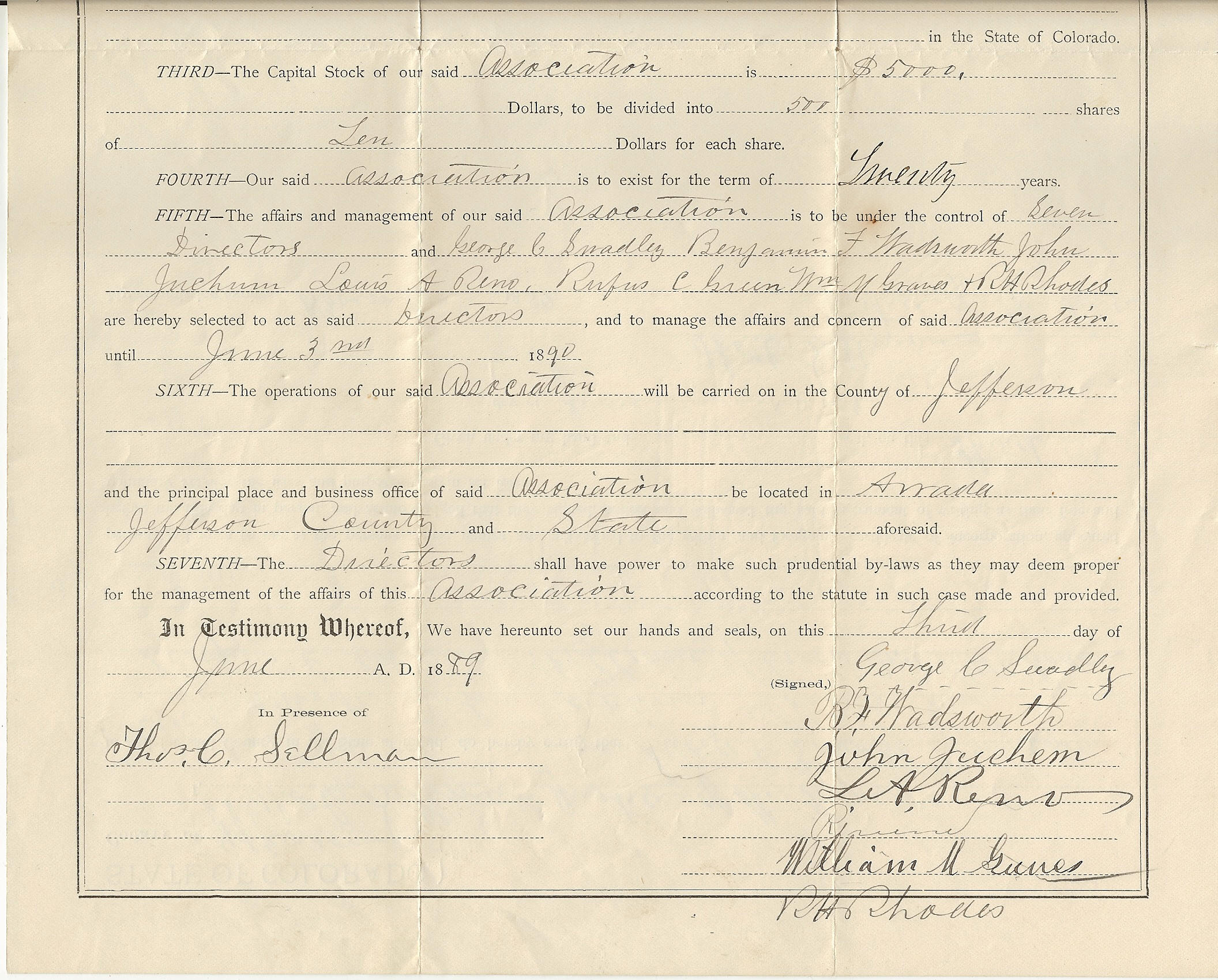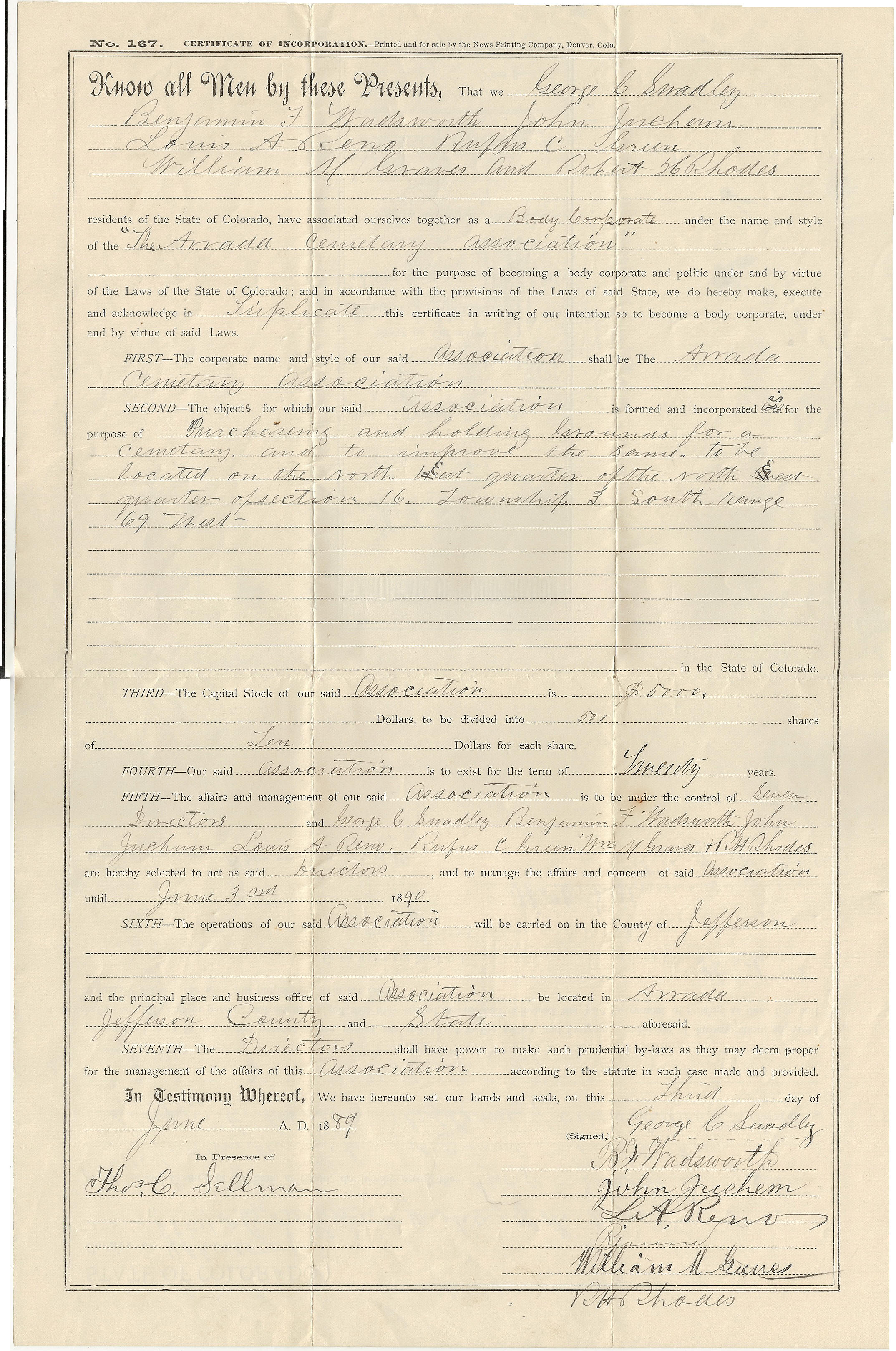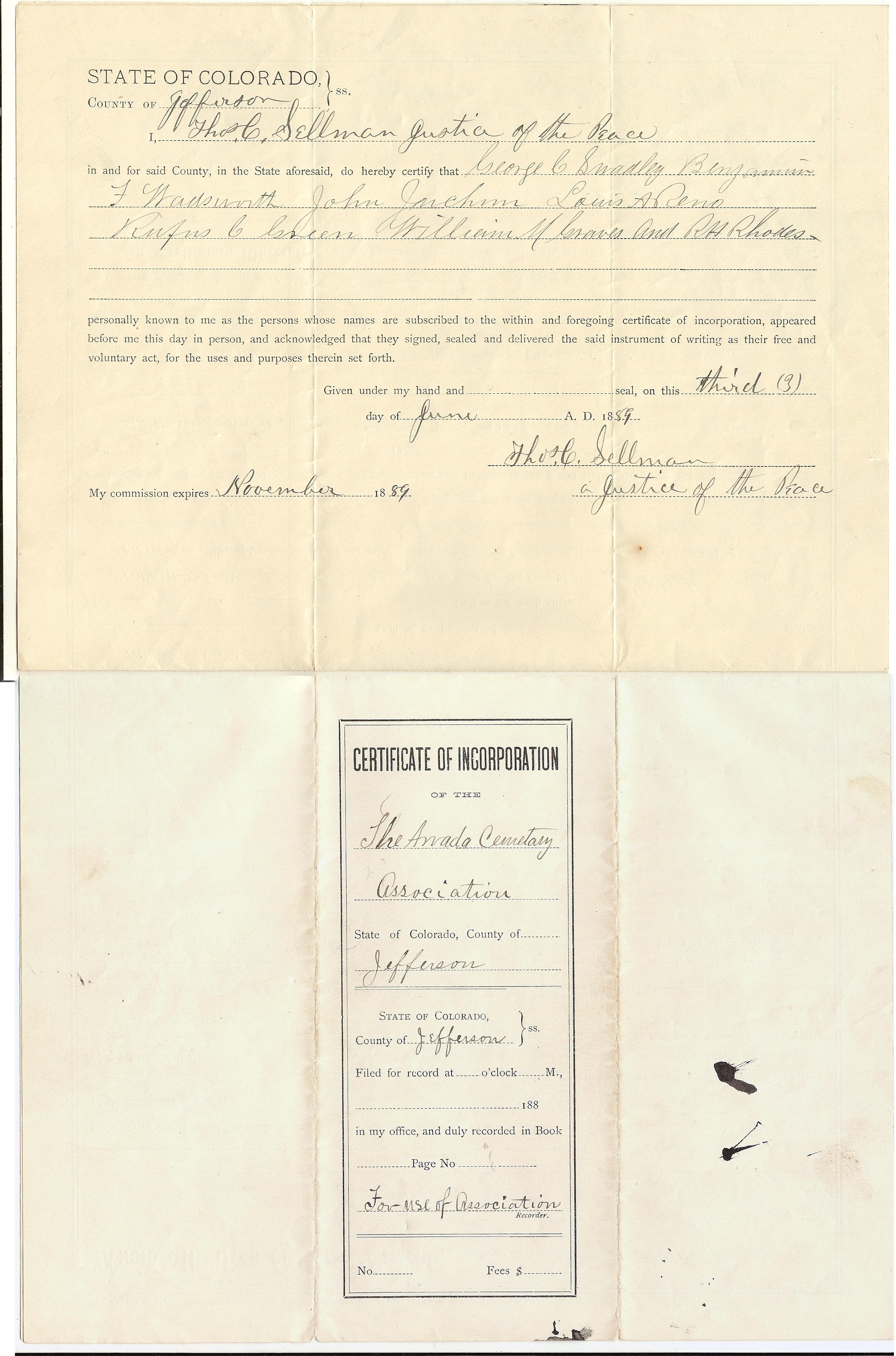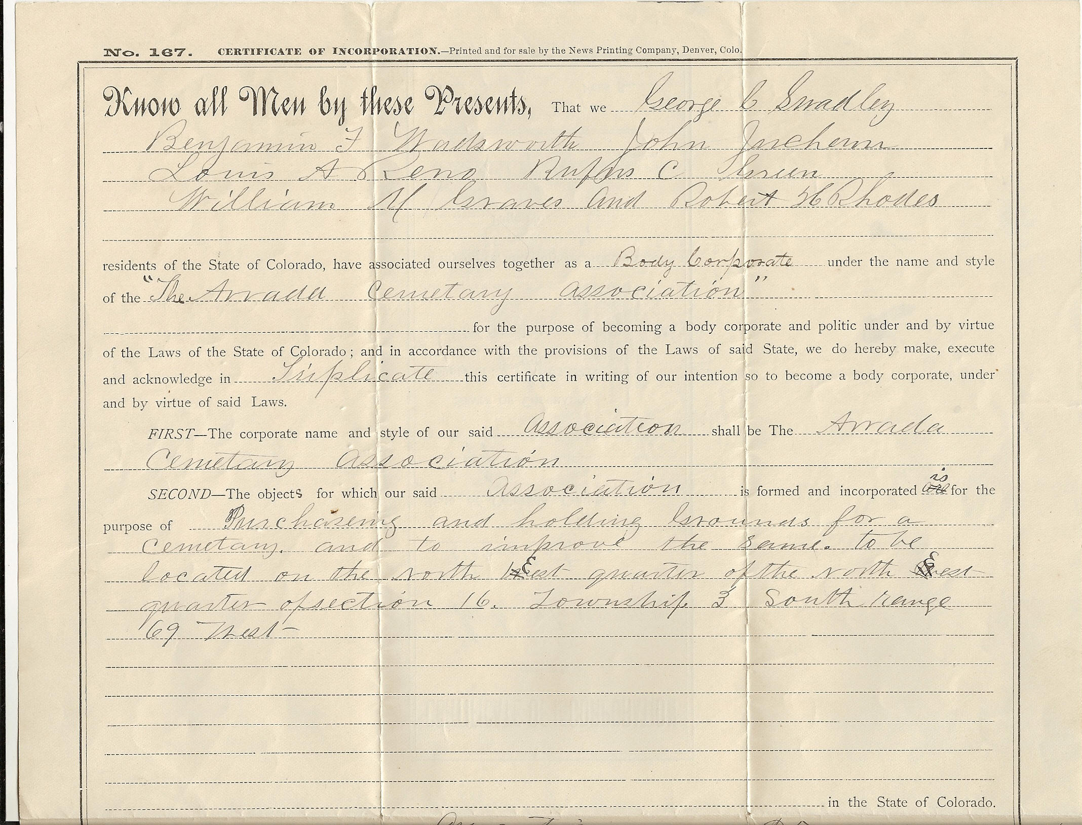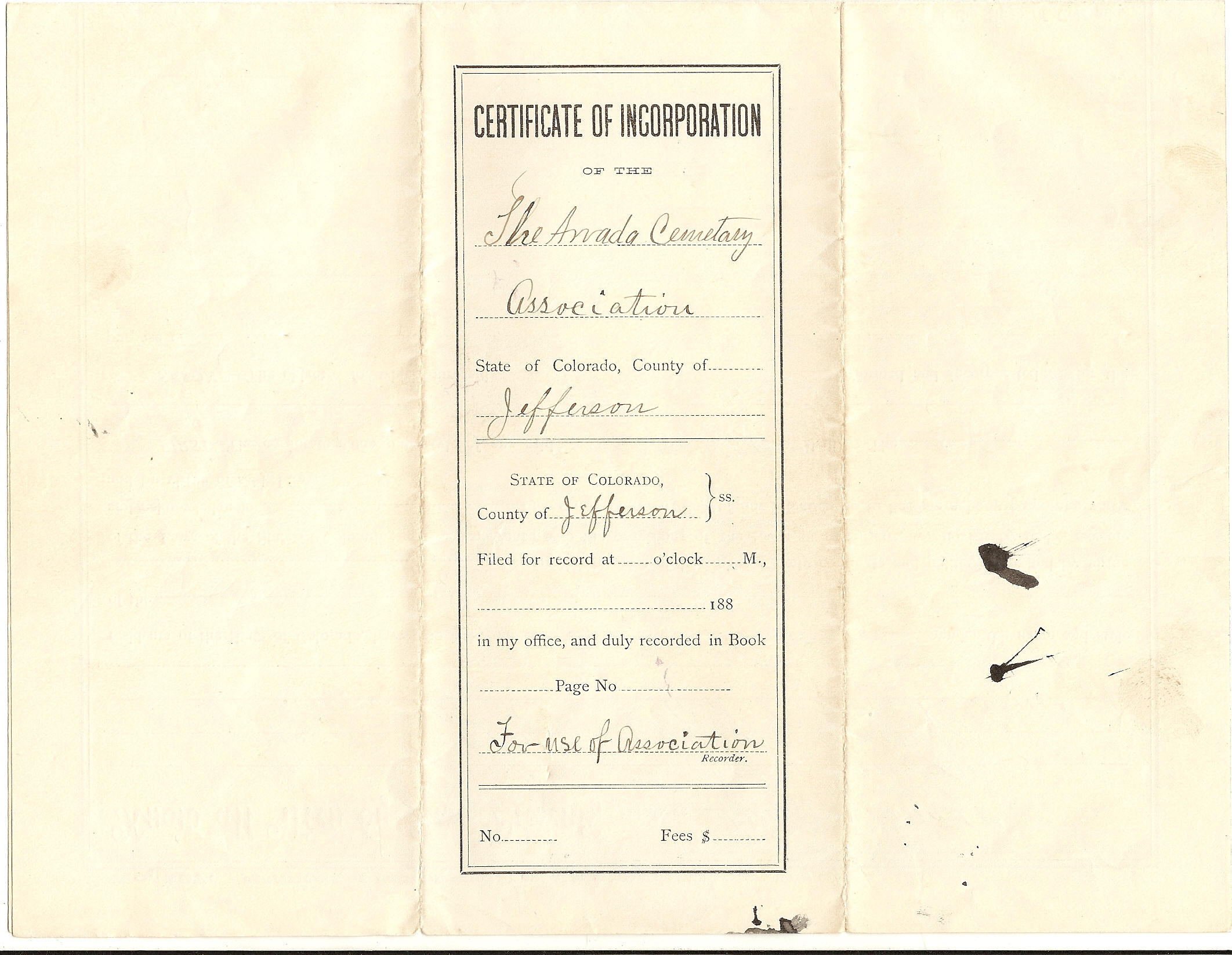 Formation of Arvada Cemetery