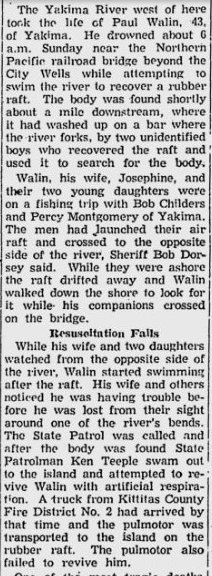 Mrs. Effie Erntson of Woodburn route 2 and Mrs. Tess Manbeck of San Francisco, Cal.; two sons, Roy Walin of South Lancaster, Mass., and Charles Walin of San Francisco; and five grandchildren. "
