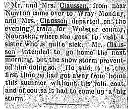 1905 "Henry Claussen, who has a homestead near Idalia, Colo., came in from Dubois Nebraska where he has been working for several months. Henry is a young man of good habits and a hustler."