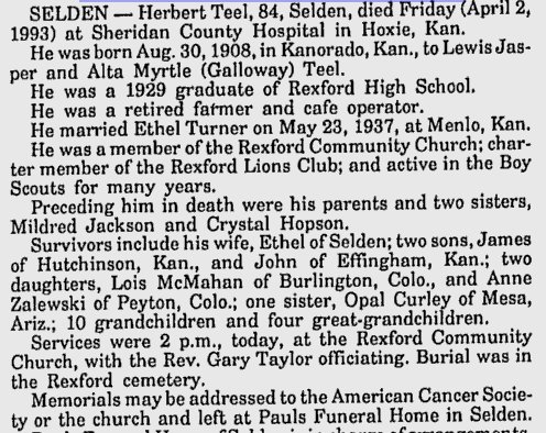 Dill Mervin "Don" Teel was born on March 6, 1908 in a country home covered with sod near Rexford, Kansas as the only child of Brack and Clara Teel. Two years later the family moved to a homestead north of Burlington, Colorado. The Teels moved yet two more times from Colorado via Kansas to a high school in Beaver City, Nebraska to improve their son's education and from which Don graduated in 1926. Don Teel joined the United States Army Air Corps in San Antonio, Texas as a Flying Cadet that started his aviation career. In 1928 he was associated with the American Aircraft Corporation in Los Angeles, California. In the years from 1931 through 1934, Teel was a barnstormer in various locations piloting Wacos, American Eagles, Stinsons, and Travelairs. In the same year, Teel held an executive flying position with the Loffland Brothers Drilling Company flying a Stagger-wing Beachcraft which operated out of Fort Worth, Texas. Three years later, he worked for the Rock Glycerine Company flying a Spartan Executive aircraft out of Odessa, Texas. At the same time Teel was barnstorming, he operated the Odessa Airport and Don's Flying Service. His company owned ten Piper Cubs, and one of each of the following: J-5 Stinson, J-5 Travelair, and Ford Tri-motor. In addition to that, Teel operated a Civilian Pilot Training program. In 1941 Don Teel joined the Royal Air Force Ferry Command delivering Lockheed Hudson Bombers to England as well as freight and VIPs. He logged over 5,000 hours in Consolidated B-24 Liberators crossing the North Atlantic in more than one-hundred flights. Teel was recognized for his Valuable Service from H.R.H. George VI, King of England. Don Teel continued to work for the RAF as an civilian until the end of 1945. After having received his Argentinian Airline Pilot License, Teel worked from 1946 until 1950 in the position of Jefe de Operacion Vuelo (Chief of Flight Operations) for the Flota Aerea Marchante Argentina (FAMA). After a brief employment as a Captain flying a Douglas DC-4 for the Seaboard & Western Airlines, Teel, was hired by the U.S. Steel Corporation in January of 1952 to establish and operate the Aircraft Department in order to transport the company's executives. Don Teel retired from this company in March of 1973. In his retirement, Teel was a Corporate Consultant to Bell Helicopter and the Flight Safety Foundation. He served on the Editorial Advisory Board of Professional Pilot Magazine. Teel was a member of numerous organizations, such as the OX5 Club, the Quiet Birdmen Association, and the Wings Club of New York to name a few. His special interest went to the National Business Aircraft Association (NBAA) serving as their acting director for many years, the Helicopter Association, and the Flight Safety Foundation. Don was married to Mildred Margaret, neé Sobie, with whom he has one daughter, Mrs. Peggie D. Osgood. His second wife was Mildred, neé Bruton, whom he married in 1974. Dill Mervin "Don" Teel passed away in 2002. |
