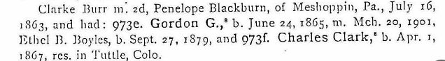 Gordon G. Burr married Ethel Boyles on March 20, 1901, recordded in Kit Carson County.