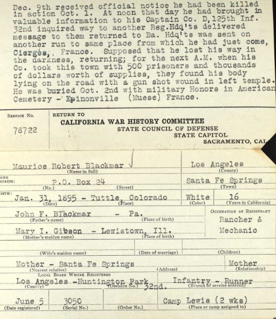 One Family Search post: When Pearl Nellie Blackmar was born on June 24, 1885, in Missouri, her father, John Frederick Blackmar, was 24 and her mother, Mary Irene "Dollie" Gibson, was 15. She was married her first time at the age of 16 to Charles Eschelman Bruner, who was the son of I. J. Bruner and Catherine Williamson. Their marriage was in Council Bluffs, Pottawattamie, Iowa, on the 2nd of February 1902. They had one child together, Frank Anson Burner who was born December 1, 1902. By the 1910 Census, Pearl is divorced living in Los Nietos, Los Angeles, California, with her mother Mary Irene and her step father Solomon Modoc Wheeler. Solomon's two other children, from his previous marriage to Florence Ellis, are living in the household. Thomas Philander Wheeler, age 24, and Charlotte "Lottie" Wheeler, age 15. Others included in the household are Pearl's younger brother Maurice R Blackmar, age 15, and Wellington C. Wheeler who is the only child of Solomon M Wheeler and Mary Irene Gibson. Her brother Maurice Robert Blackmar was killed 1 October 1918. On 25 December 1928, Pearl married Kirby Dalton Little, who was the son of P. C. and Julia P. Little in South Pasadena, Los Angeles, California. The marriage license lists Pearl as Pearl N Ramsey. No records have been found of a marriage of Pearl to an Unknown Ramsey. Kirby died in 1956 and Pearl remarried Harry Melvin Foltz on 6 October 1962 in Los Angeles, California at the age of 77. She died on May 17, 1983, in Fullerton, California, at the age of 97, and was buried in Whittier, California." |