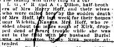 December 8, 1932 - Kirk items in the Yuma Pioneer " Henry Hoff is going to have a sale soon and will probably seek employment at Lincoln, Nebraska. He being alone since the death of his wife a week ago, is very much dissatisfied and is at a loss to know what to do."
