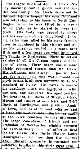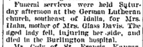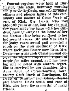 Leah (Glass) Davis 1847-1935 is buried in Burlington # 73803036.