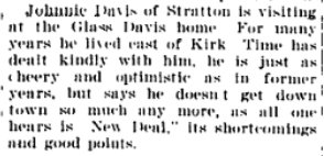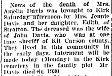 Eleanor Amelia McLaughlin, daughter of Amelia Homrighaus and John Glass Davis, pioneer families of Eastern Colorado, passed away March 20, 2006 in Newburgh, New York after a prolonged illness. She was born December 13, 1912 in a sod house at Kirk, Colorado and lived her early childhood on a ranch on the Republican River northwest of Burlington. She attended a small country school at Idalia, Colorado and completed high school in Burlington. She was one of the first women to receive a BS degree in Entomology from Colorado Agricultural & Mechanical College, now Colorado State University, Ft Collins, in 1934 where she was very involved in campus activities and a member of Kappa Delta Sorority. In November of that year she married J. Ross (Mac) McLaughlin, a college classmate and they enjoyed a loving marriage until his death at Byers, Colorado in June 1983. They lived in Stratford, Texas, Mosquero, New Mexico, and Nucla, Castle Rock, Arvada, Deer Trail, Pueblo, and Eagle, Colorado and moved to Byers, Colorado when Mac retired. After his death, Eleanor moved to a cooperative apartment building in Denver run by the Denver Teachers' Association where she was very active on the coop board, served as a volunteer with the Society for Range Management (Mac was a founding member), with agencies serving the needs of senior citizens, and was a docent at the State Capitol. When her health began to fail, she lived with her son, John, and daughter-in-law, Peggy, in Bakersfield, California and Raleigh, North Carolina. After Peggy’s death, she and John moved to be near family in Newburgh, New York. Eleanor and Mac lived in Deer Trail from 1944 to 1957 where they were very active in support of 4-H and Deer Trail Grange #412. Both were supporters of ecology and conservation activities and they shared a great love of music. Eleanor very much enjoyed her participation in the local music club. She was quite proud of her Welsh heritage and after retirement visited the region around Merthyr Tydfil from which the Davis family migrated. She obtained a teaching certificate in 1958 and taught elementary school at Lime (Limon?), Colorado and high school literature, debate, and related subjects at Eagle Valley High School. She was deeply involved in Delta Kappa Gamma, international teacher’s society. She is preceded in death by her brother, Louis Glass Davis, who was her close friend and fellow Aggie entomologist. She is survived by her son, John Ross McLaughlin, Newburgh, New York; grandson, James (Jim) Ross McLaughlin, Gainesville, Florida; granddaughter, Margaret Amanda (Mandy McLaughlin) Bywater and husband Steve, Newburgh, New York; and 5 great grandchildren: Rourke, Margaret (Meg), Seth, Rose, and Shane Bywater. A memorial gathering will be held later this spring at the old pioneer cemetery at River Bend where her ashes will join those of her husband on the prairie they loved so dearly. Memorial contributions may be made to the Nature Conservancy. Submitted by: John R. McLaughlin After Peggy’s death, she and John moved to be near family |