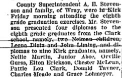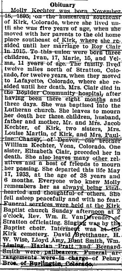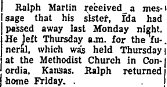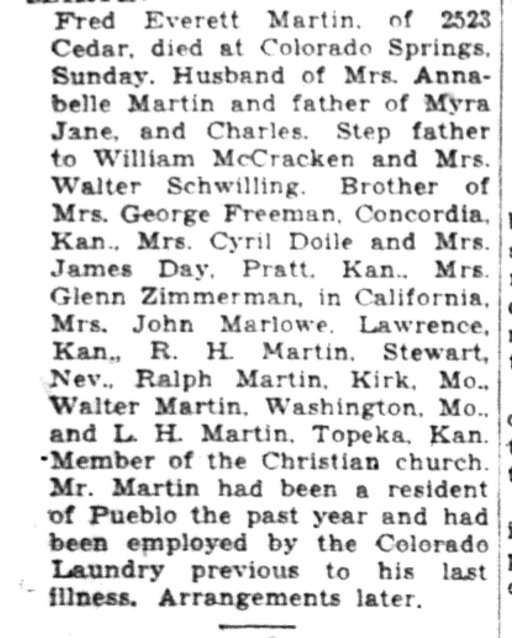 In 1917 Ida E. Martin passed the teacher's exam in Lawrence, Kansas. December 2, 1919 Lawrence Kansas "Miss Ida E. Martin of Washington, D. C. arrived in Lawrence yesterday to spend a month vacation with her parents, Mr. and Mrs. A. J. Martin, and friends. ." Ida Elizabeth (Martin) Marlowe 1899-1961 is buried in Concordia # 92327254, with John A. Marlowe 1873-1961. A brother Walter Andrew Martin 1895-1972 is buried in Franklin County, Missouri # 56986932. |