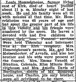 Louis J. "Louie" Homrighaus 1884-1930 is buried in Kirk, # 64361963.