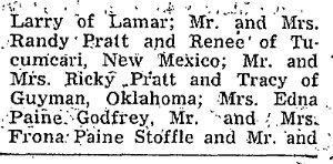 1940 Mr. and Mrs. Claude Paine, Robert and Frona Bell attended the baccalaureate sermon at Stratton Sunday morning. The eldest daughter, Edna, graduated from the Stratton school."