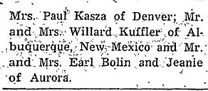 1942 "Mr. and Mrs. Earl Bolin and mother, Mrs. Bertie Bolin, of Fort Collins spent the week end at the Harlan Pratt home. Mr. Bolin had been in the Panama Canal zone working at his trade of mechanic but was stricken with malarial fever and is home on sick leave."