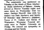 1979 Haxtun, Colorado news "Mr. and Mrs. Elton Atteberry spent several days in Wray helping Mr. and Mrs. Keith Atteberry get ready for their move to Alaska. They lefto on Friday."