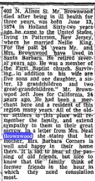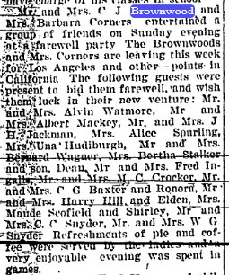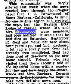 In 1942 the 61 years old, self employed patrolman Nicholas Brownwood was with his wife Edith living at (still) 4365 Bel Air Drive, in the city of La Canada [Flintridge], Los Angeles County, California, when he was administrated on a WW II Draft Registration Card. Nicholas Brownwood died in September 1948 at the age of 67 years in Los Angeles County, California. THIS ARTICLE MISTAKENLY SAYS C.J. October 7, 1948