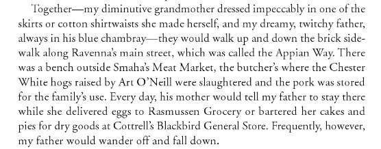 One historic home in Ravenna has "On the trunk at the foot end of one of the beds sits cream colored high toped shoes circa 1930's that were in the inventory of Fred Cottrell's "Blackbird Store" in Ravenna when it went out of business in 1980. (This store had the look and smell of an old time general store that somehow survived sixty years past it's time! Fred's inventory was so extensive that stock sometimes became antiques before it sold.) "