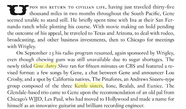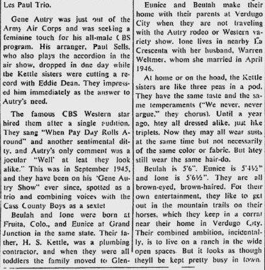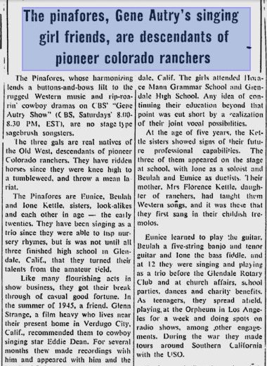 The sisters appeared with Gene in 1949 "Riders of the Whistling Pines."