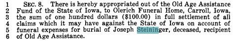 Carroll, Iowa - August 1948 Funeral services were conducted Saturday morning from St. Mary's Catholic church at Marion, S. D., for Mrs. Joseph Friemuth, sr., cousin of Mrs. John Loneman and Mrs. Joe Steininger of Carroll. Mrs. Friemuth died at her home near Marion, August 11. She had been in failing health for some months. The Rev. Fr. Zimmerman officiated at the mass and graveside rites. Interment was in the Catholic cemetery at Marion. Mrs. Friemuth was born Frances Steiningcr, daughter of Anna and Joseph Steininger, in Bavaria, Germany, on May 3?, 1874. At the age of 17 years, she and a sister came to this country settling in Carroll, where she lived until 1??5, at which time she moved to a farm home near Marion. In 1900 she married Joseph Friemuth at Carroll. The Friemuths had eight children, all of whom survive their parents, with the exception of one son, John, who died at the age of one year in 1916. Mr. Friemuth died April 21, 1930. Survivors include Mrs. Peter Crawford * Carroll,. Iowa J Hauger (Mary), Irene; Frances Friemuth and Christine Friemuth, at home; Sr. Joseph (Ann) St. Joseph's hospital, Mitchell, S. D.; Sr. Helen (Helen), Aberdeen, S. D.; Joseph, at home; Dr. Frank Friemuth, Crawford, Neb.; also two daughters-in-law and one son-in-law. She leaves three sisters, Cecelia Steininger, Omaha, Mrs. Grace Frisbee, Kuna, Idaho, and Anna Steininger, Clarinda, and one brother, Michael, still in Germany." |