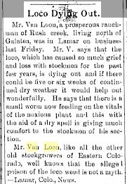 August 1902 Kiowa County, Colorado Press "Mr. Vanloon, stockman, who has been living at Pilot, Colorado, has moved north of Galatea."