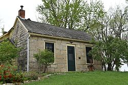 "The Dirk Van Loon House, also known as the Rock House, is an historic residence located in Pella, Iowa, United States. Van Loon was a native of the Netherlands who immigrated to Pella in 1856. He bought this property from Dominie Scholte, the town's founder.[2] Van Loon built the single-story, coarsely dressed, native limestone structure, and the frame addition off the back as his family grew. In 1875 he became a homesteader in Kansas. The house was listed on the National Register of Historic Places in 1982.