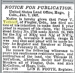 Peter J. Verhoeff married Lottie Stott on December 19, 1900, recorded in Kit Carson County.