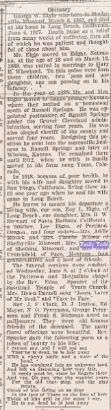 Grover 1886-1975 is buried in Wenatchee, Washington # 60028419, with Emily Ann (Quintin) Todd 1901-1992.