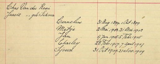 Cornelius, born August 31, 1899 in Indiana? to Charles Vander Kooi and Jessie Sikma,