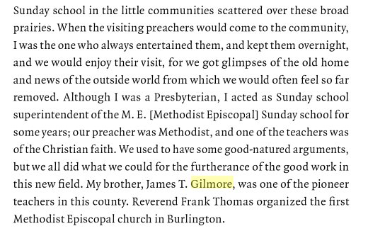 Thomas E. Gilmore, sister Ella and Franklin F. Thomas, sister Ida and Harry Hoyt, sister Martha and Charles L. Lundy, half-brother James H. Gilmore , 7S 42W