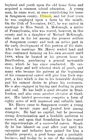 This one died in 1913 "Charles A. Havey, for the past 28 years a prominent grain dealer of Bradfordton, Illinois, passed away