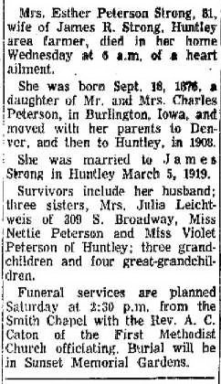 In 1920 Esther is married to James R. Strong, and they're farming in Yellowstone COunty.