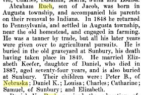 The 1880 census has Peter 47, Ann E. 43, Harriet R. 18 - these three born in Pennsylvania, Florence 14 Iowa, Alfred 11 Edward 9, Arthur 6, and Clara 3 born in Nebraska.