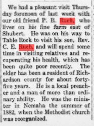 1904 "Mr. Ed. Ruch preached a very good sermon at the Methodist church last Sunday - Shubert, Nebraska.